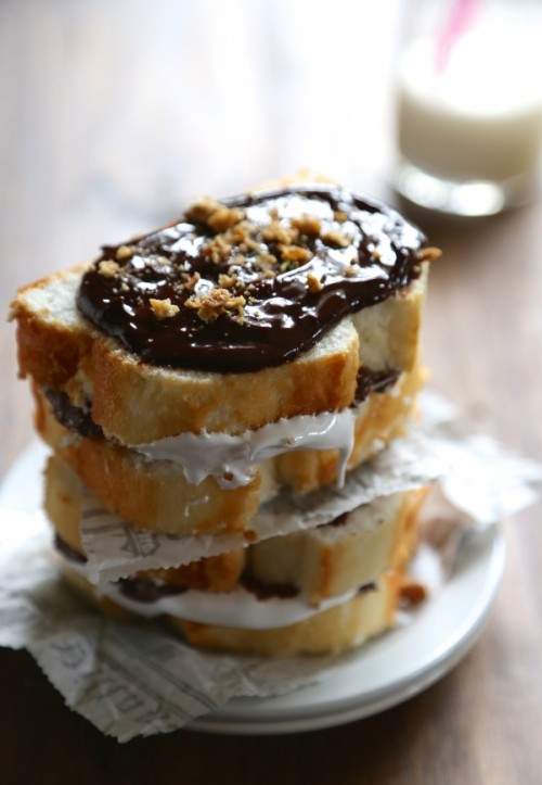 Nutella Smore Angel Food Cake Sammies with Marshmallow Frosting Climbing Grier Mountain